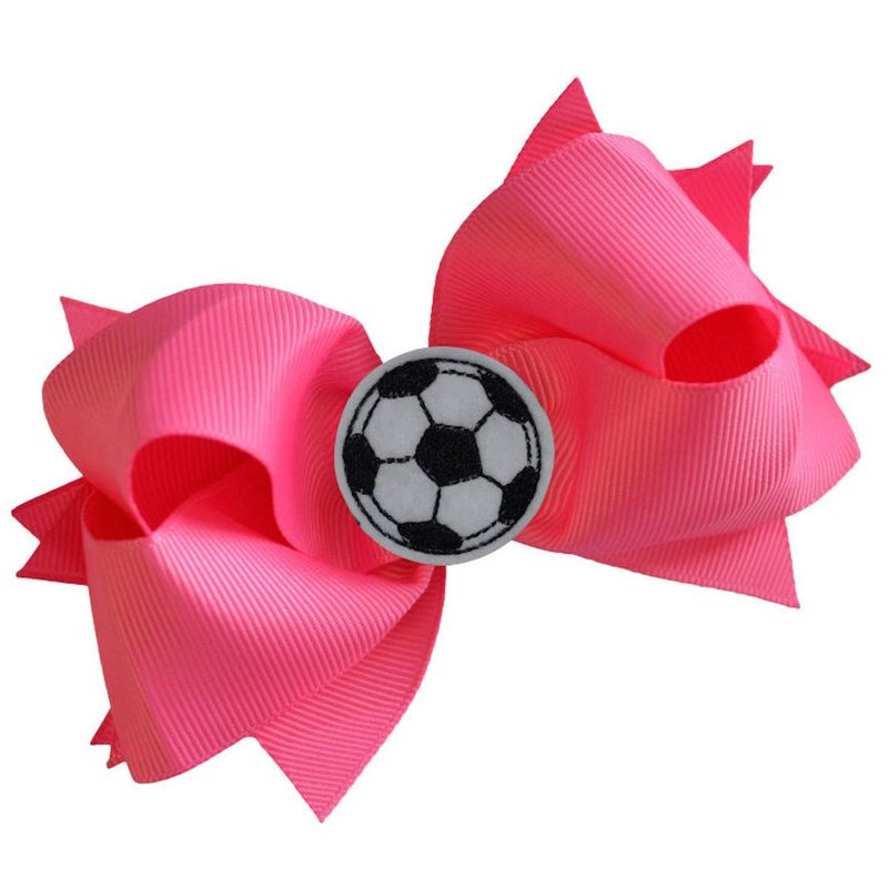 SOCCER BALL BOW Girls 4.5 Inch Grosgrain Soccer Hair Bow with Embroidered Soccer Ball By Funny Girl Designs (Hot Pink)