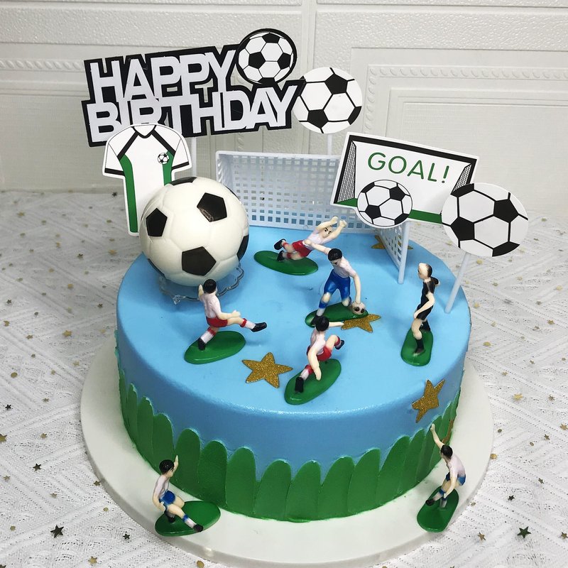 - ✨Soccer cake toppers included: 2pcs x goals,1pcs x soccer ball, 7pcs x resin soccer players figurines,1pcs X happy birthday cake toppers,4pcs x soccer theme happy birthday cake toppers.Players are small commodities. The surface of players is difficult to be colored. So there are a few defects in the surface coloring. If keep in mind, please think twice.