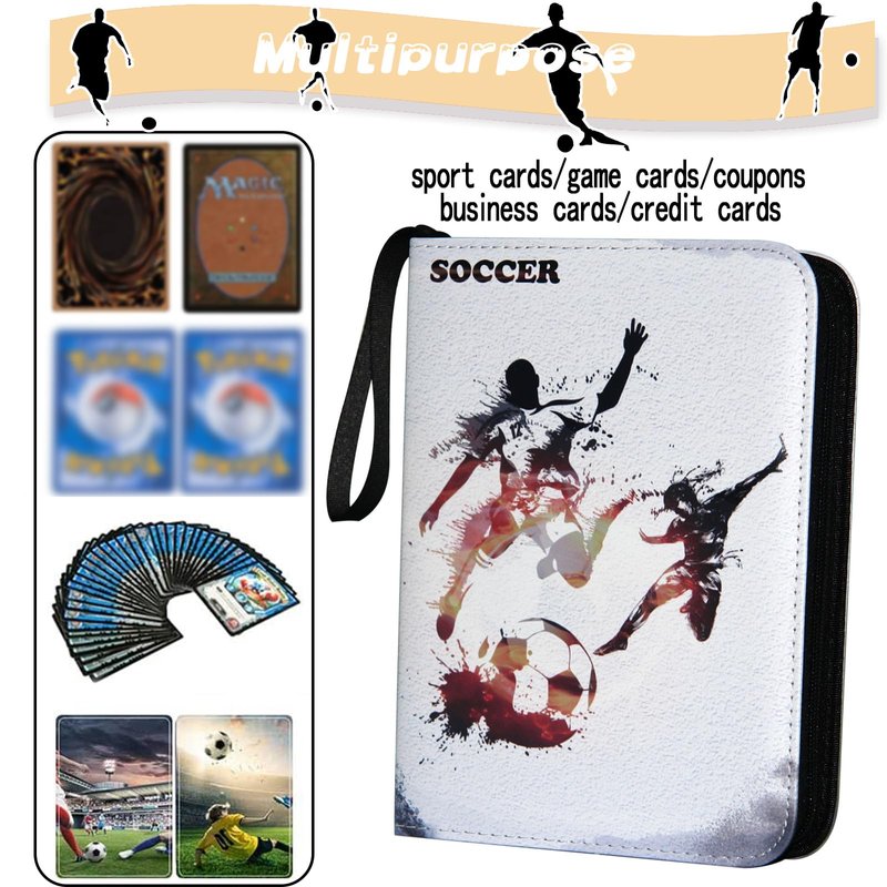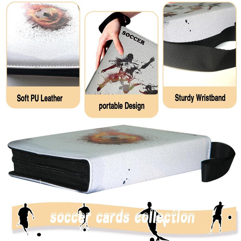 This soccer card binder is made of high quality PU leather, durable and waterproof. Highly transparent card sleeve for easy display and browsing. The zipper design ensures that the cards cannot be lost. All-round protection for your cards. The 4-pocket card binder with 50-page sleeve can hold 400 cards. Store and display your cards in this trading card binder to keep them organized. Compatible for Different Card, Trading card binder fits all standard size cards like football cards, baseball cards, top aces, game cards, attack cards and more.