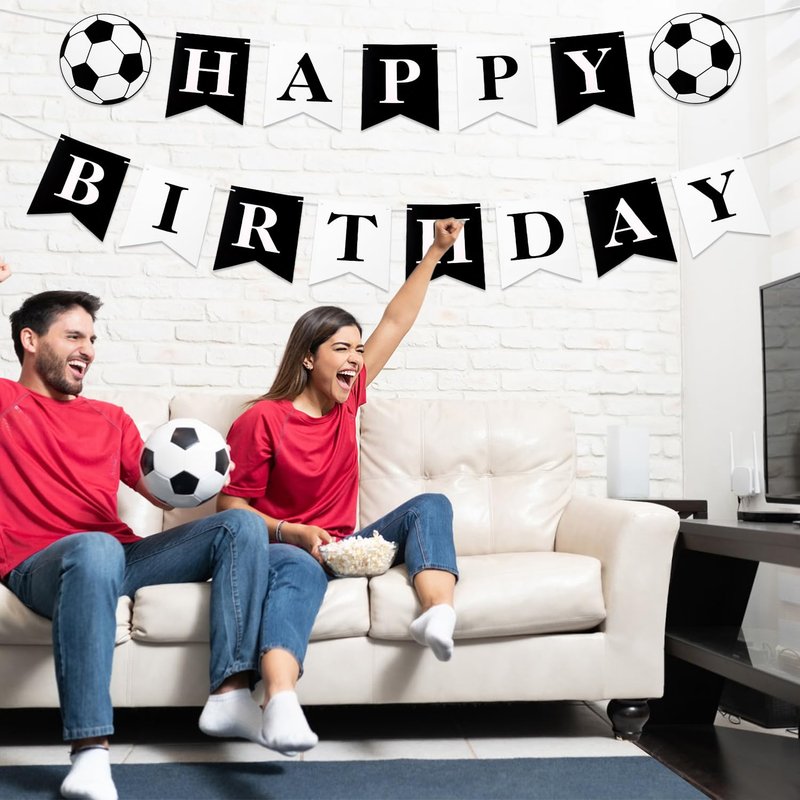 - Wide Applications: This soccer black white happy birthday banner is suitable for use as a decoration for birthday celebration parties, football theme parties, etc. It can be easily hung on doors, walls, windows, glass, kitchens, living rooms, bedrooms, etc.