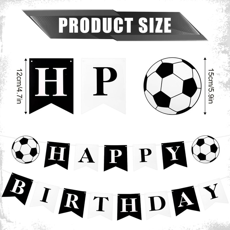 - Package Includes: You will receive a set of this soccer black white happy birthday banner, including 2 football cards, 13 letter cards, 1 threading needle and 1 coil. You can use them together.