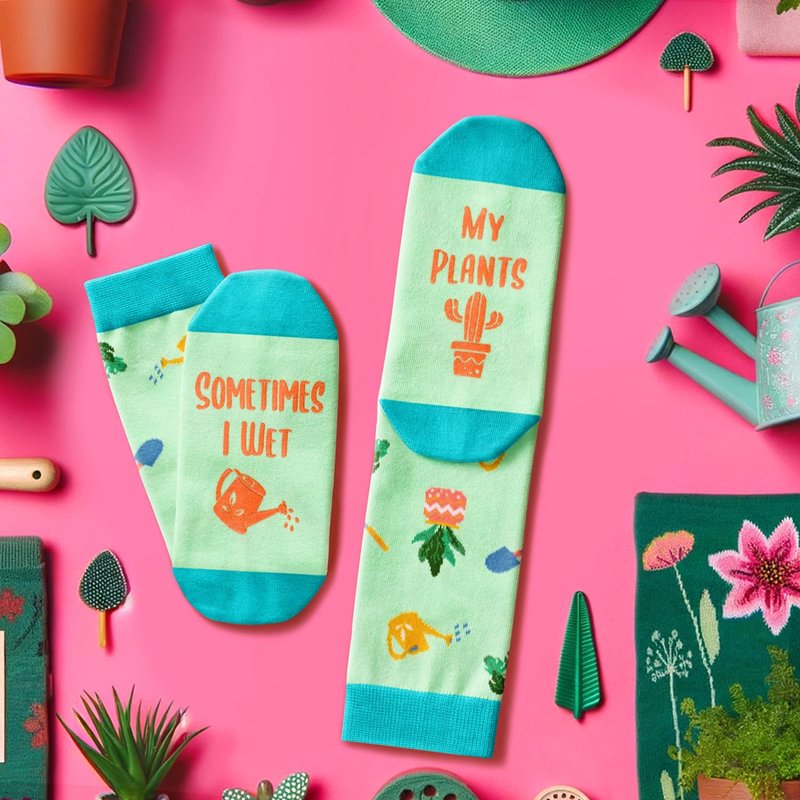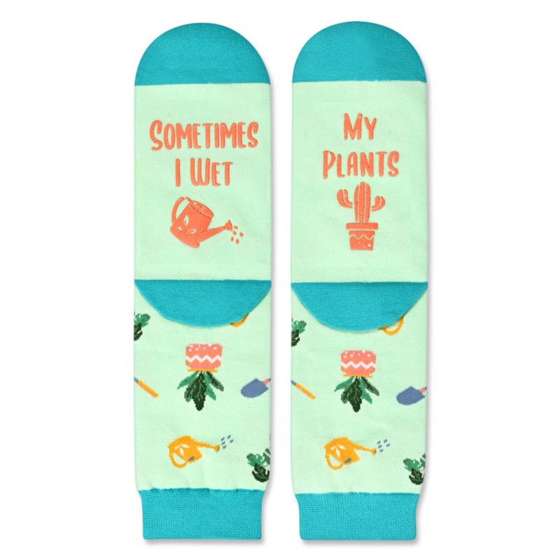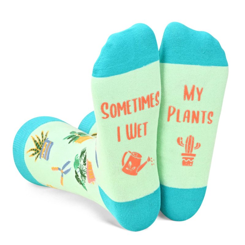 - PLANT SOCKS - These funny flower socks feature plants and gardener's tools. The bottom of the socks features a secret message written in non-slip ink: "SOMETIMES I WET MY PLANTS". These pot leaf socks are perfect for enjoying nature and having fun!