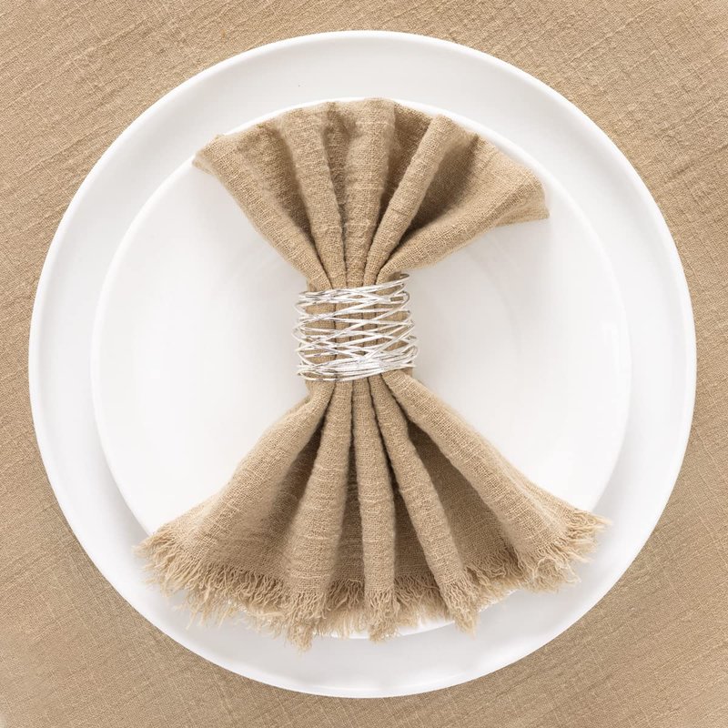 Socomi Handmade Cloth Napkins with Fringe Set of 12 Caramel Cotton Linen Napkins 18"x18" Rustic Dinner Napkins Bulk for Wedding Party Baby Shower