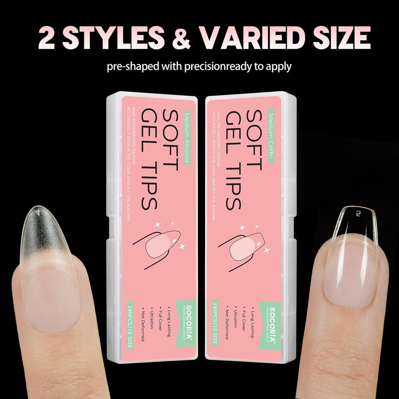 - 🍁【Multiple Application】SOCORIA Nail Tips can be used for gel nail polish, Press on Nails, Acrylic Nails, Liner Gel Art, Dip Powder Nails, poly nail extension gel, great for nails salon, DIY at home nails art.