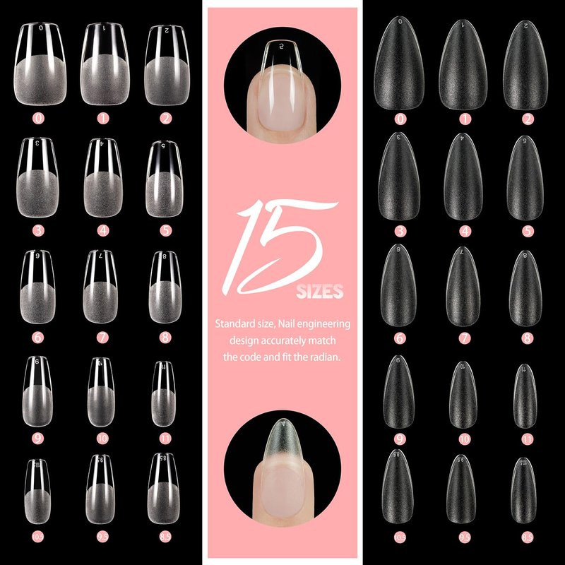 - 🍉【Varied Size & Super Fit】2 Packs 480pcs Medium Coffin & Medium Almond Nail Tips, 15 different sizes, whether you have a wide flat or narrow nail bed, you'll Easy to choose the suitable size for every finger. Treat yourself or the women you loved, whether as a birthday gift, Valentine's Day gift, or Mother's Day gift, it is a perfect choice.