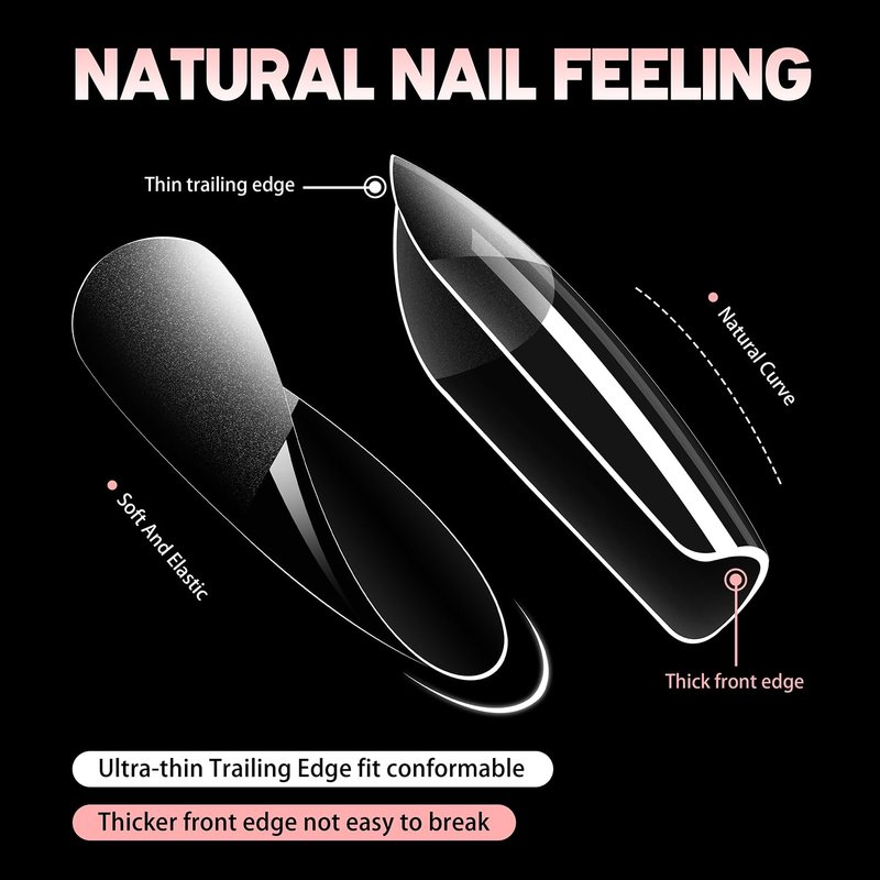 - 💓【Professional Soft Gel Nail Tips】 Crafted from high-quality soft gel material is flexible and not easy to break, are very similar to real nails and will give you the most comfortable and natural wearing experience, so you don't need to worry about typing, doing housework or holding things in daily life.