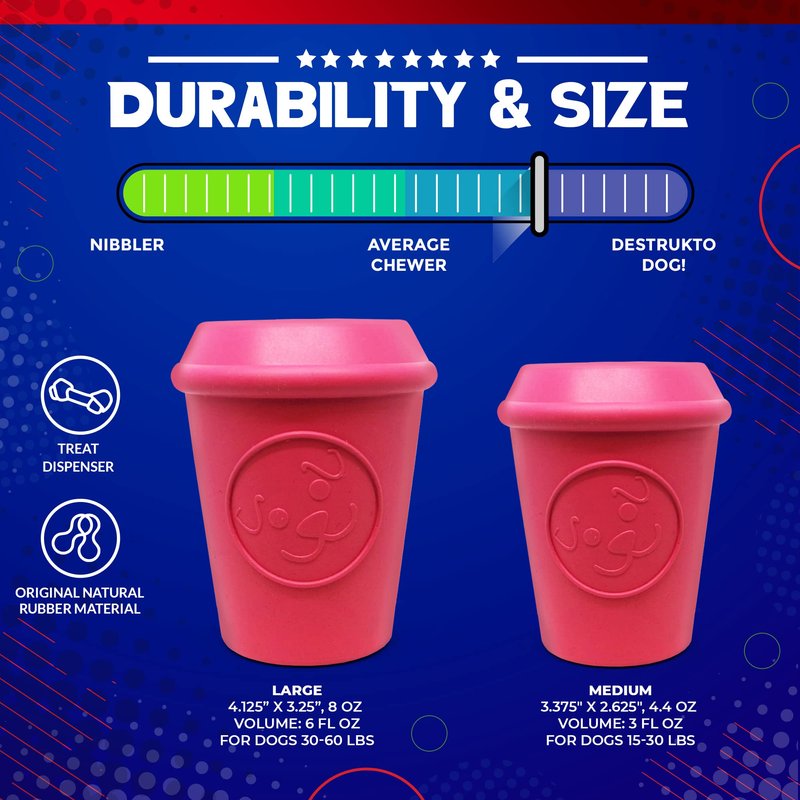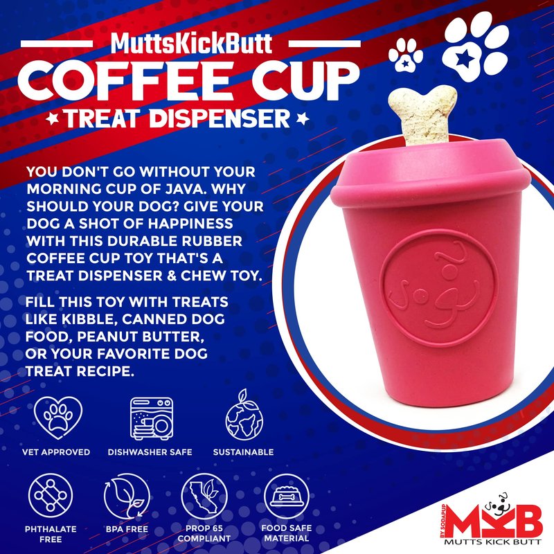 Soda Pup Coffee Cup Dog Toy - Dog Puzzle Toys - Treat Dispensing Dog Toys - Dog Enrichment Toys - Sturdy Dog Toys - Red - Medium