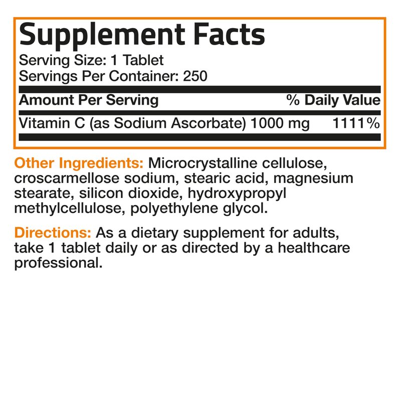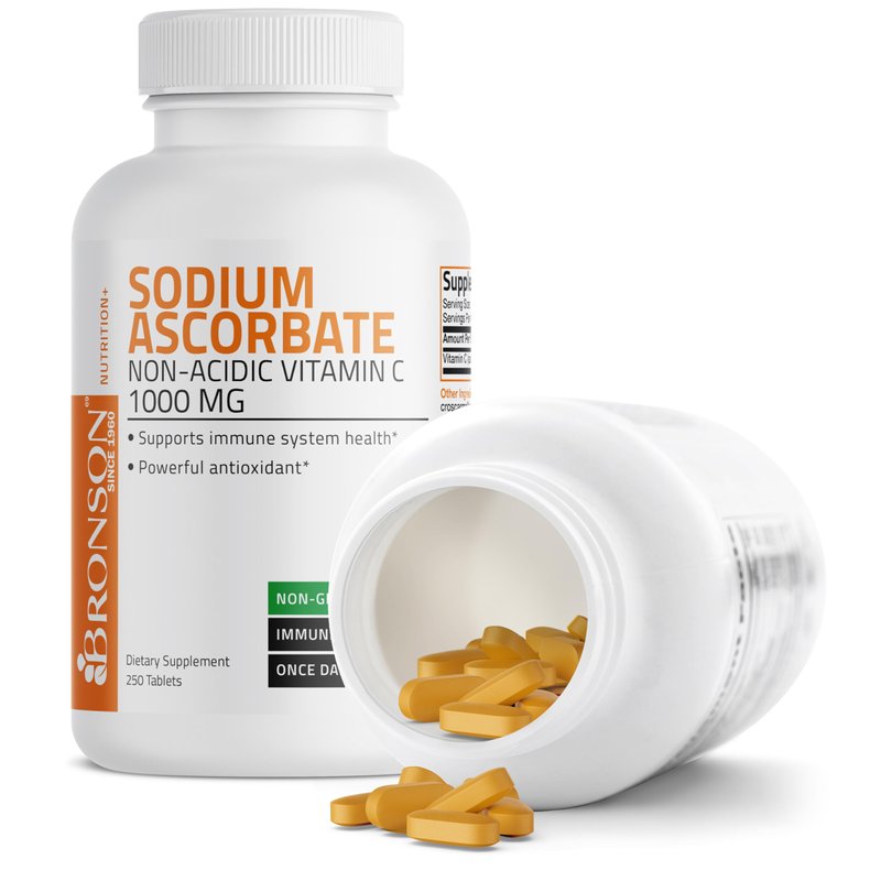 Sodium Ascorbate Non Acidic Vitamin C 1000 Mg Tablets - Gentle On The Stomach - Immune System Booster - Powerful Antioxidant - Non GMO Vitamin C Supplement, 250 Count