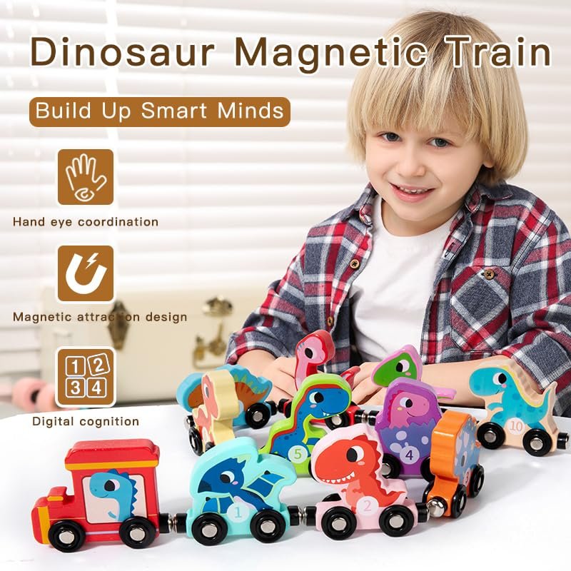 - Double-Sided Design: Magnet train set beautifully double-sided printed with charming dinosaur patterns, providing an engaging visual experience and inspiring toddlers' imagination