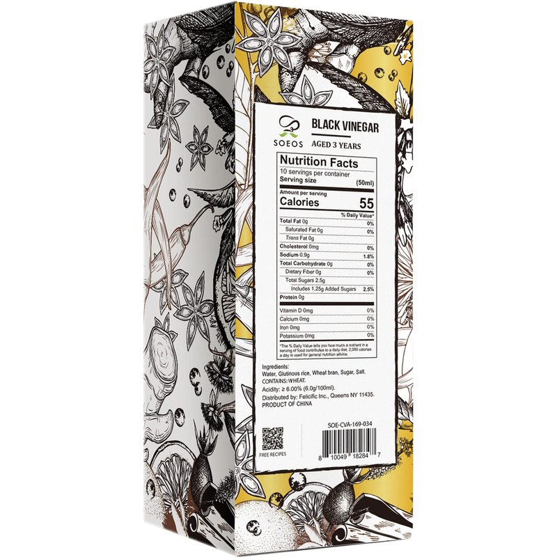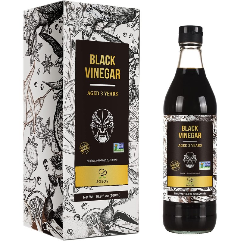 Soeos Chinkiang Vinegar 16.9 fl oz (500ml), 3 Years Aged, Naturally Fermented, Mature Aged Black Vinegar, Chinese Black Vinegar, Zhenjiang Vinegar, Black Rice Vinegar, Black Vinegar Chinese.