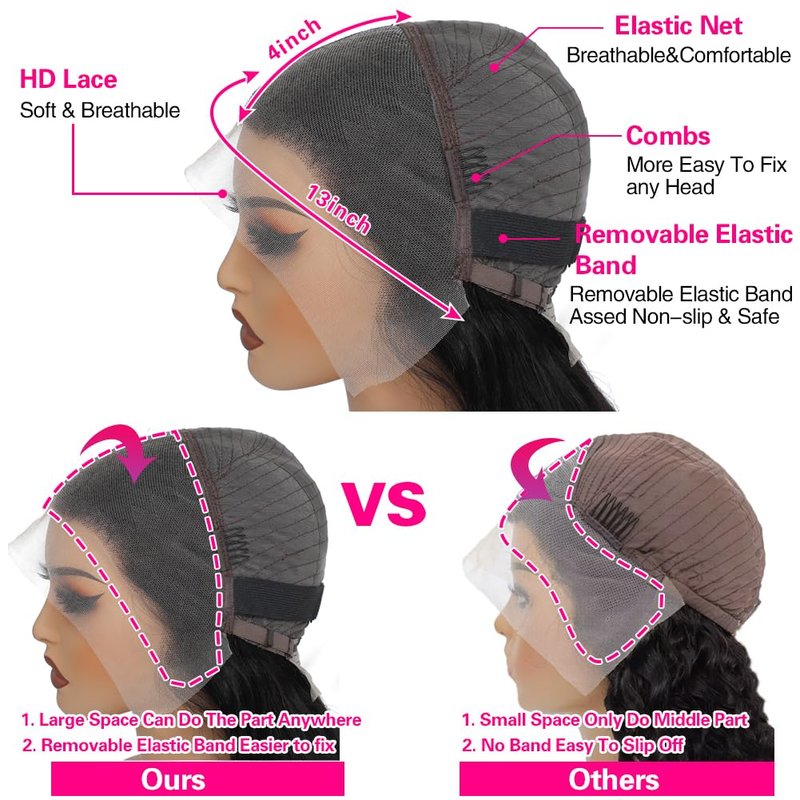 - 13x4 HD Lace Front Wigs Human Hair Detail: 13x4 HD Lace Front Wigs Human Hair For Black Women Wig Human Hair Pre Plucked Small Knots; Natural Hairline With Baby Hair Around; HD Transparent Invisible Soft Thin Lace Melt Easily Blend In Any Skin Tone
