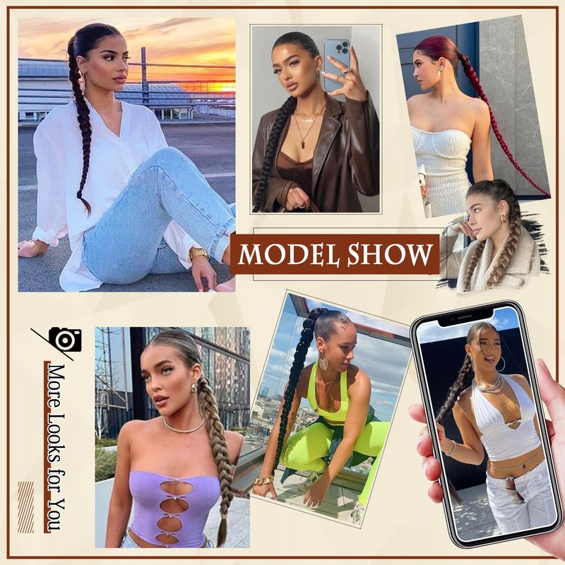 - Instant Braided Ponytail:The long Straight braided ponytail extension