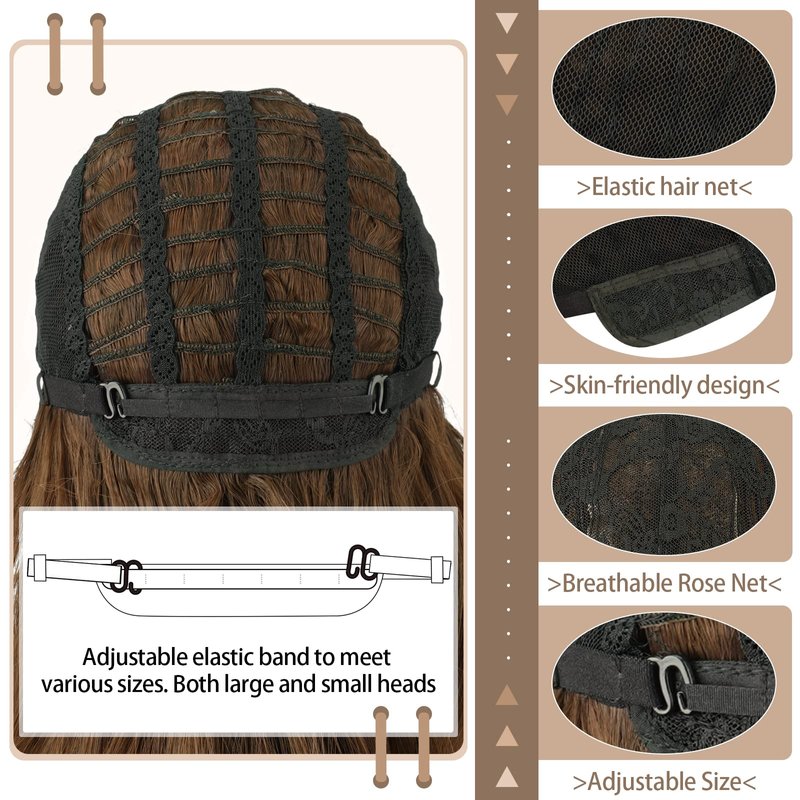 - Adjustable Wig Cap: Elastic breathable rose net, soft and comfortable, breathable and not stuffy. Comfortable to wear, set with a soft elastic adjustment band, the average size of 21-23 inches head circumference, suitable for most people, you can adjust the size according to the head circumference. Both sides fixed hairpin, solid and not easy to fall off.