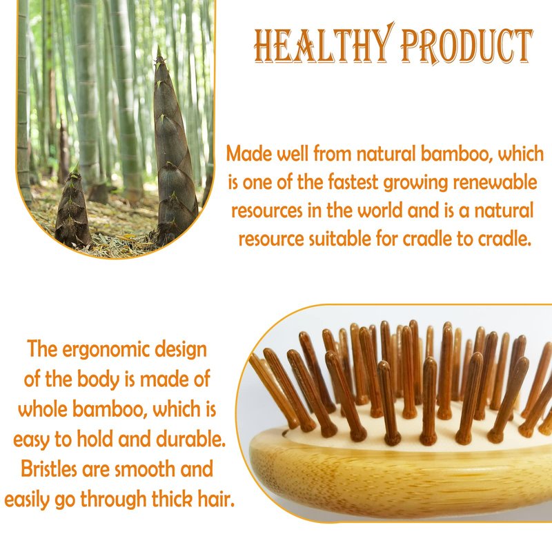 These hair brushes are made from 100% natural bamboo. Its bamboo bristles gently massage the scalp to improve blood circulation and relieve stress.