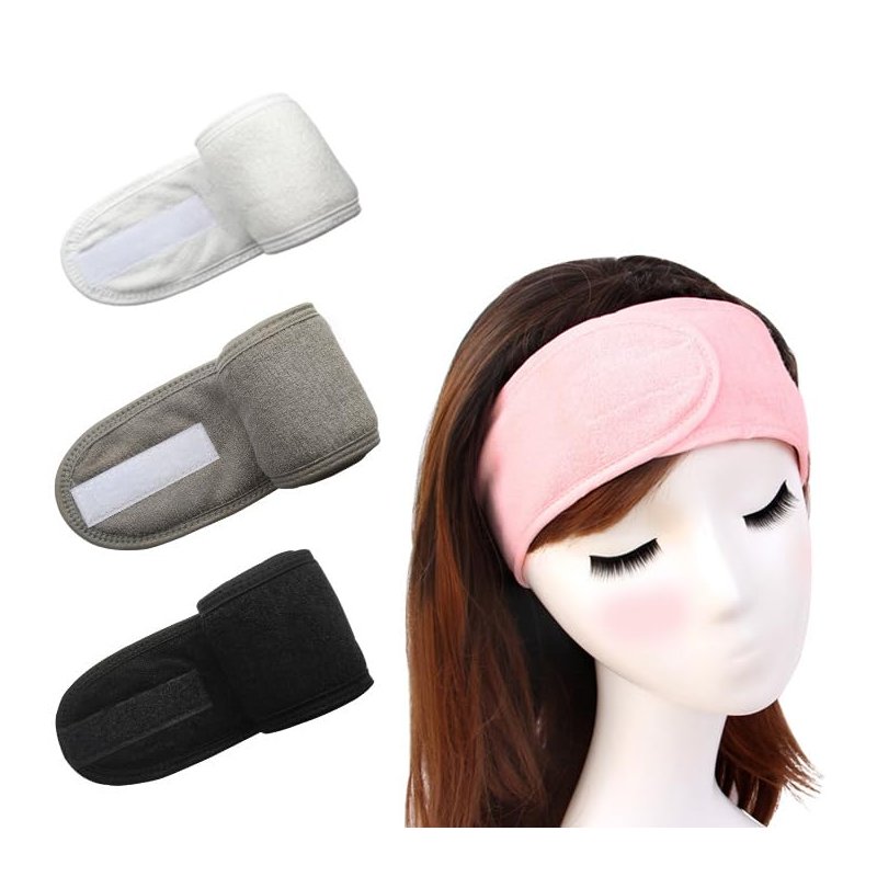 Soft Adjustable Velcro Headband, Beauty, Hair Accessories, Hair Wrap, 3 Piece Set (White, Black, Grey)