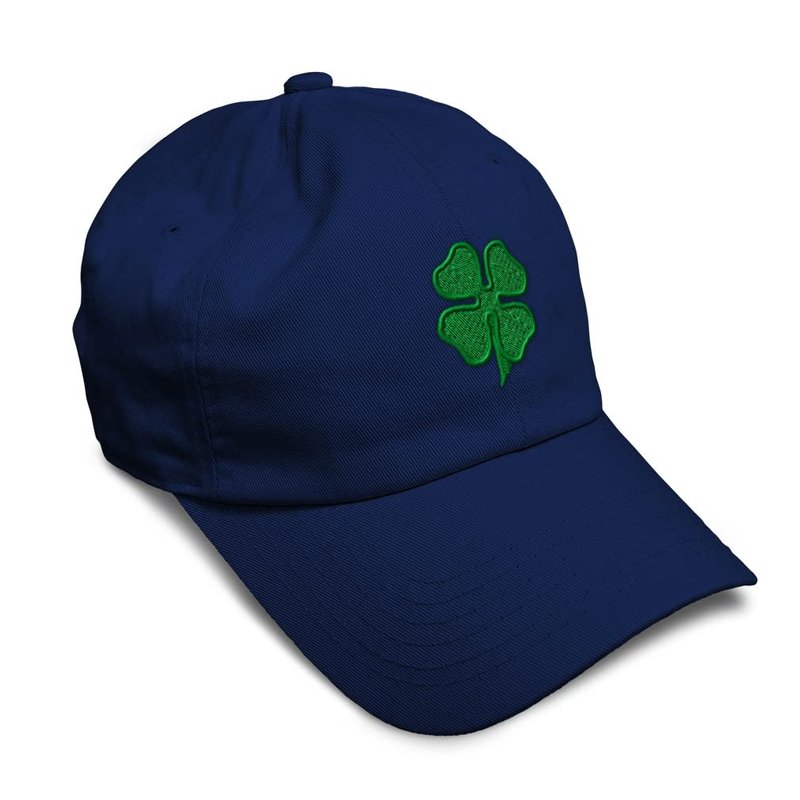 Soft Baseball Cap 4 Leaf Clover Embroidery St Patrick's Day Shamrock Twill Cotton Celtic Clover Dad Hats for Men & Women Navy Design Only