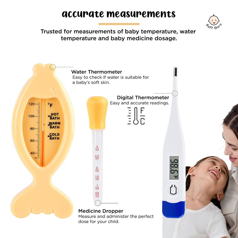 Soft Guru Baby Healthcare and Grooming Kit | Nursery Essentials for Newborns Gift Set | Includes Thermometer, Nail Clippers, Soft Brush & Baby Shower Basket Registry Items.