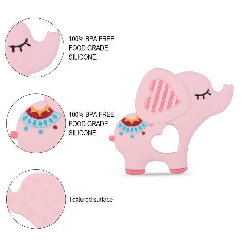 Soft Pink Elephant Teether Toy for Babies 0-6/6-12 Months Silicone Chew Teething Toy