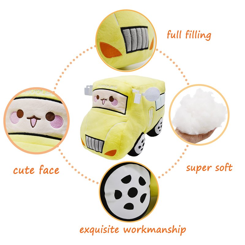 - DURABLE AND EASY TO CLEAN:This bus stuffed toy is easy to clean. Machine washable and machine dry without worry about fading.
