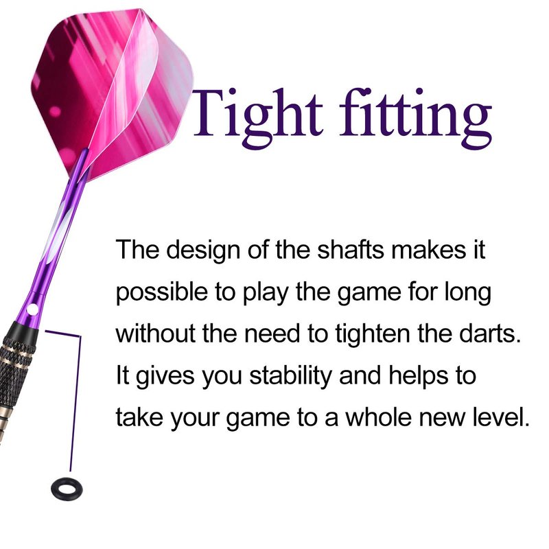 - STABILITY AND FLY STRAIGHT -----These shafts feature locking holes and rubber O-rings allow for a tighter fitting to the barrel that improves stability and greatly reduces the need to retighten during play. Quality flights are constructed to help increase speed and reduce drag, delivering a consistent flight path for pinpoint accuracy;