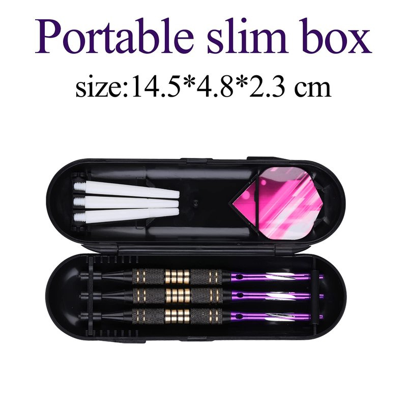 Each set includes 3 darts, extra 30 plastic tips + 6 flights in 2 patterns + 3 nylon shafts + 50 rubber O-rings +1 black case