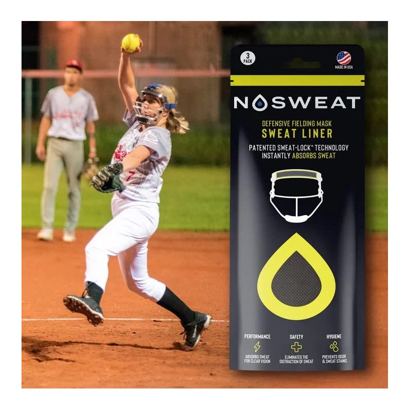 Take your Softball game to the next level! Protect your vision and keep sweat out of your eyes in the field with the NoSweat Fielding Mask Sweat Liner. The NoSweat Fielders mask sweat liners are made with Patented SweatLock Technology. Use these in the field and our helmet liners behind the plate or in the batters box. Our patented technology is made from premium materials, providing maximum comfort and moisture protection without sacrificing breathability. NoSweat keeps the sweat from intruding on your concentration, allowing you to stay laser-focused for every play. NoSweat has been tested on the most grueling fields across the country, giving it a reputation for durability, dependability, and effectiveness like no other liner on the market. With NoSweat, you don’t need to sacrifice performance even when the temperature rises. Don't let sweat get in your way - choose NoSweat today!