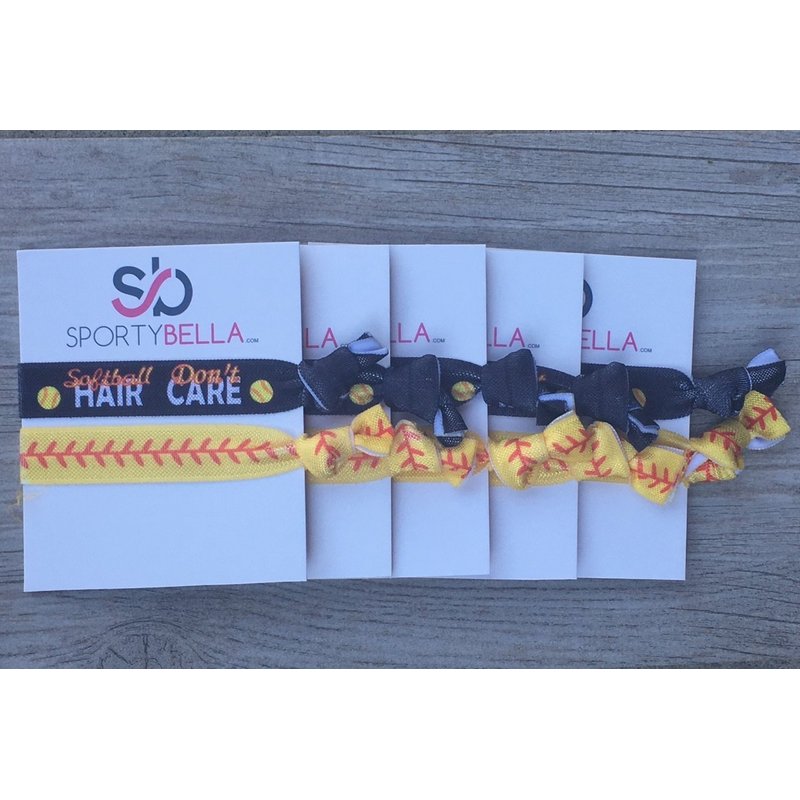 Softball Hair Accessories, Set of 5 Girls Softball Hair Don’t Care Hair Ties, Softball Team Gifts, Exchange Gifts or Softball Party Favors