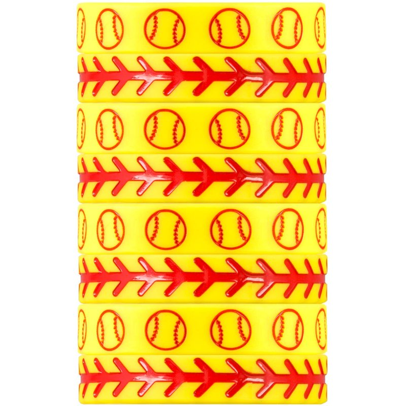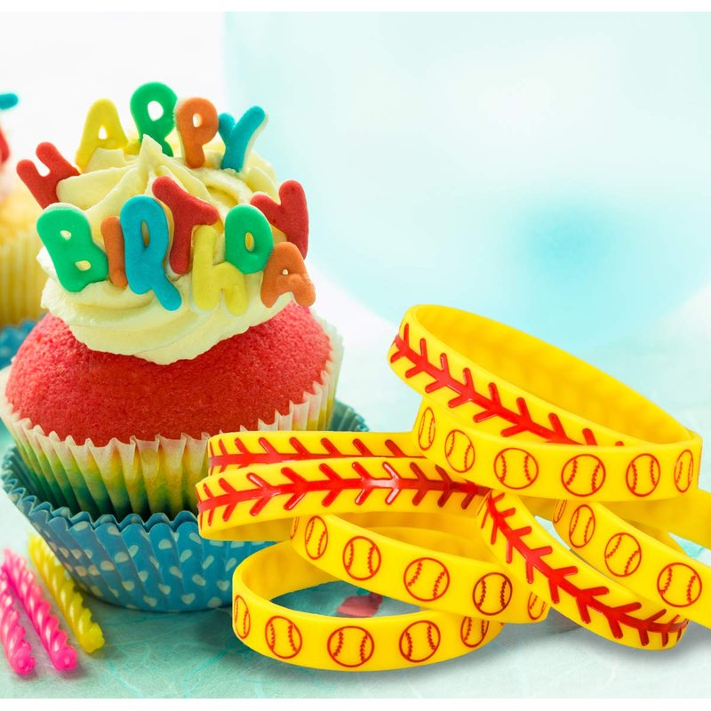 Softball Silicone Wristbands - Great Softball Party Favor, Football Birthday Themed Party Decorations, Wristband Bracelet, 8 Pack Party Favor Bag Set (4 of Each Design, 8" Circumference)