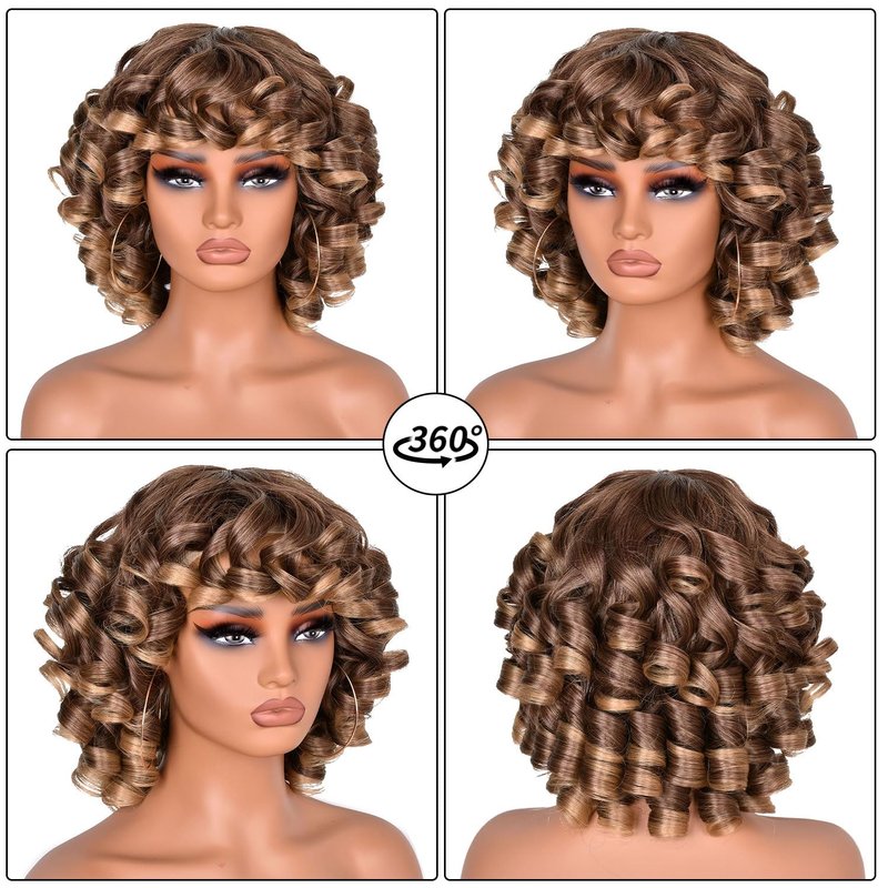 - Advantage:Short Curly Wigs for Black Women,Big bouncy fluffy short curly wig, soft hair, durable, reusable