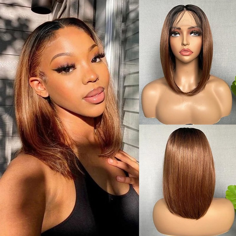- 【Hair information】Color #OP27(ombre brown), suitable for any occasions and a perfect choice for gift. Super soft and lightweight. 12 inch bob style