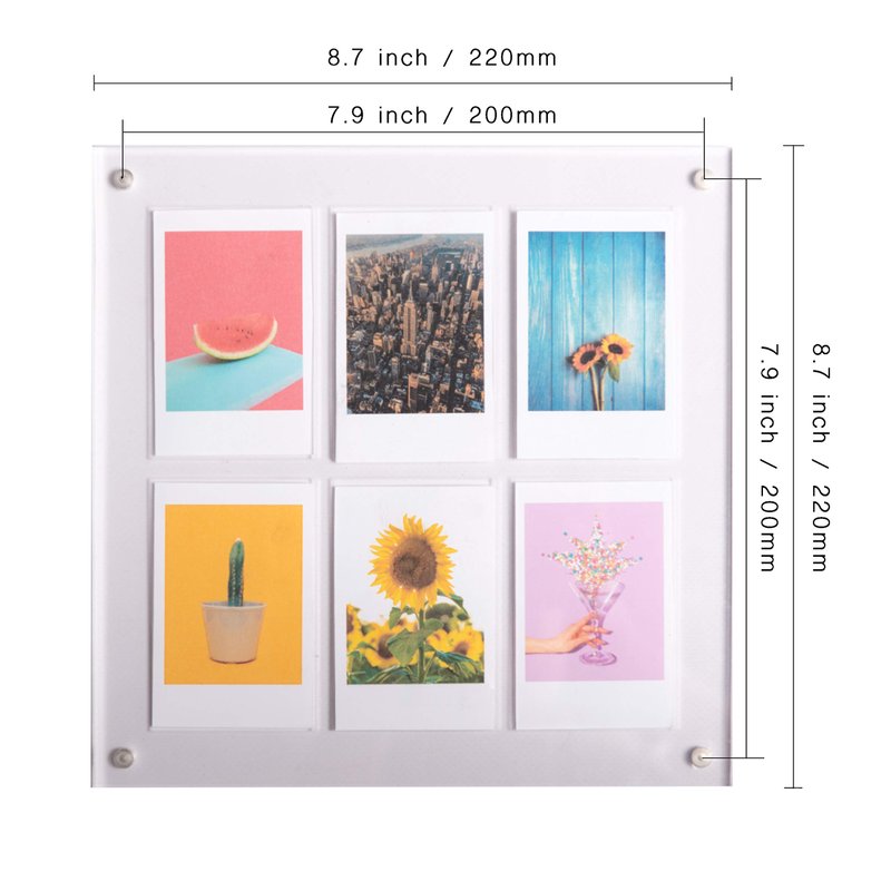 - MULTI-FUNCTIONAL PICTURE FRAME - INCLUDES INSTAX MINI COLLAGE. Two displaying options - The grid option holds Six 2'' x 3'' Images. Grid is made of a clear sleek acrylic and supports -Instax Mini Styles 9 8 8+ 70 7s 90 25 26 50s, SP-1 SP-2, Including HP Sprocket, Polaroid Zip, LG Pocket. Wide frame option holds one 8'' x 8'' image. Easy to use design and quickly interchangeable so you can always have your latest Instant Print photos on display.