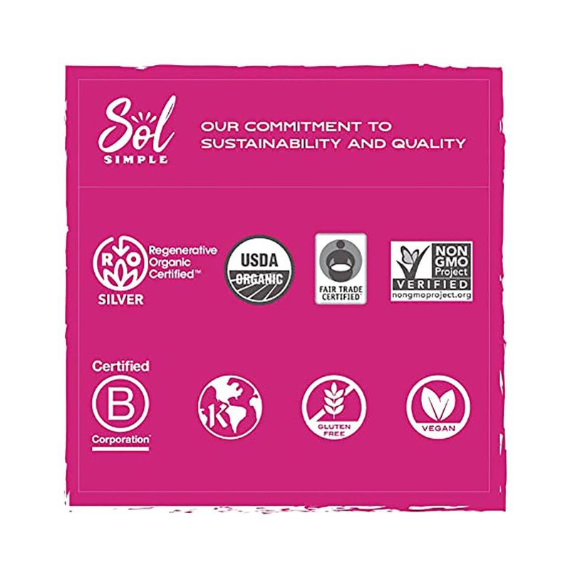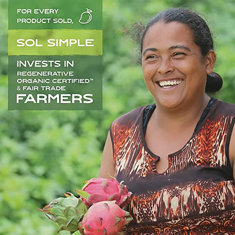 - SOL SIMPLE: We were the first fruit processor in the world to be Regenerative Organic Certified (ROC). What does this mean? Our fruit grows in a forest, and is planted alongside other trees and crops. Because of this, our soil is rich with microorganisms and draws down carbon into the ground, helping to reverse climate change. Our farmers are paid fairly and treated with respect. In summary, we are building a new agricultural model that puts farmers and mother earth first.
