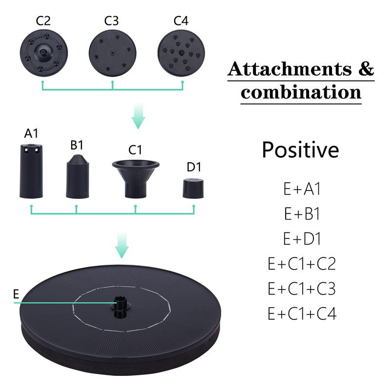 - 【4 Different Spray Heads】Our birdbath fountain comes with attachments and 4 different sprinkle heads to pump different water spray pattern. The spray height can reach 12-18 inch.It is not only to attract birds to drink in your birdbath, but also to add fun to your children while playing in the pool.