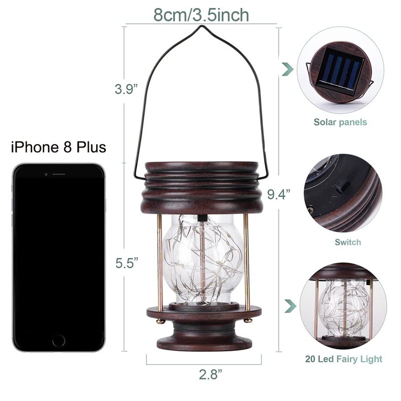 - 【ROMANTIC VINTAGE DESIGN】: These solar lanterns lights adopt a retro classic style, lit with 20 warm miniature LEDs. The warm lighting will make your surroundings full of romance and fairy tales. MAINLY MADE FOR DECORATION, NOT FOR ILLUMINATION.