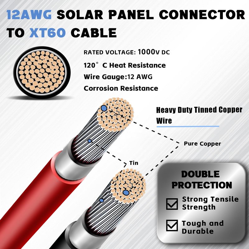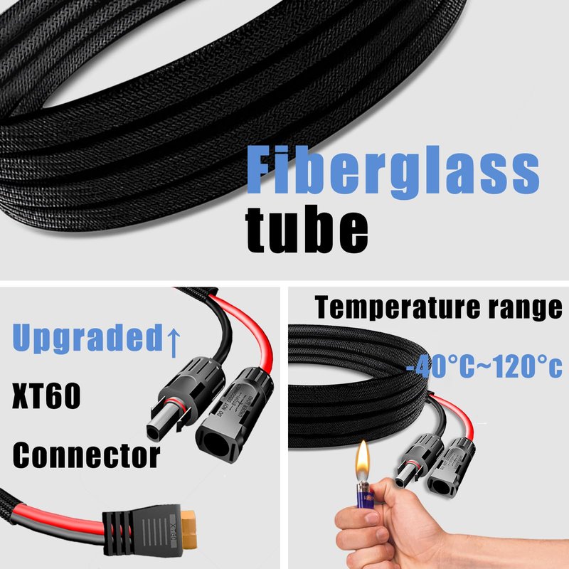 - 【Upgraded XT60 Connector】The new upgraded and reinforced injection molding design and strengthen the fixing and safe of the solar wire,which prolongs the solar xt60 cable's service life..