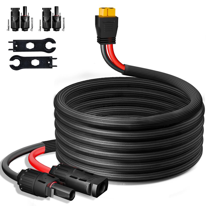 - 【20FT Solar to XT60 Cable】12AWG cable with tinned copper strands,Solar connectors to a solid, molded one-piece female XT60 connector.outside of the wire's insulation is a fiberglass wrapping which help to avoid any friction. the kit includes 2 pair of connectors and 2 spanners.