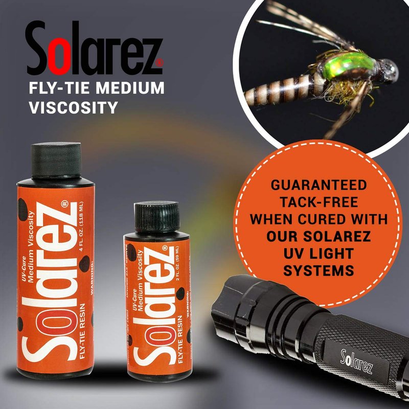 LOW ODOR, CURES IN SECONDS, GUARANTEED TACK-FREE WHEN CURED WITH OUR SOLAREZ UV LIGHT SYSTEMS! No more mixing 2-part epoxies! No more wasting precious fishing time waiting for messy epoxies to set-up when you are tying your flies. Get back on the fish! Work with it as long as you need to as it will only cure when exposed to UV light. It is also great for repairing damaged flies or repairing home projects in a flash!