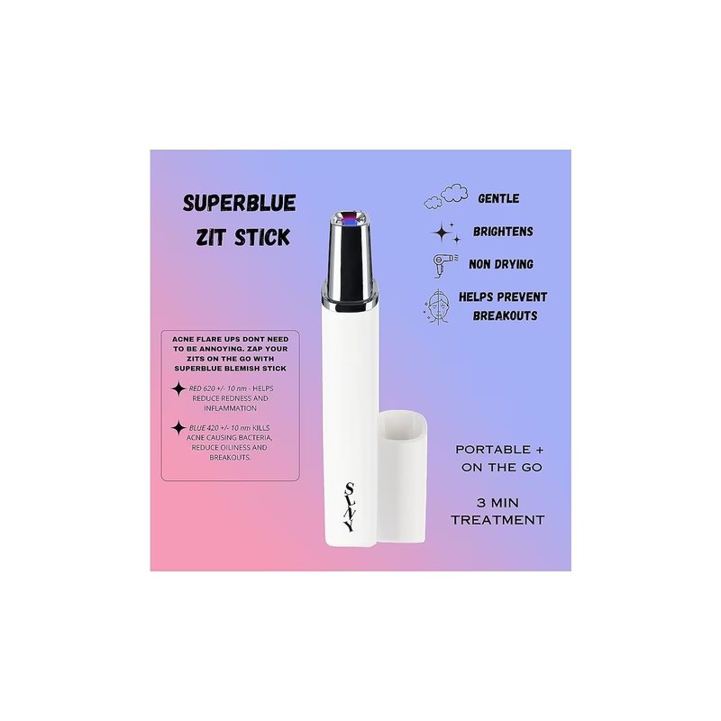 Say goodbye to stubborn acne with the SUPER BLUE blemish stick. This portable spot treatment uses a combination of blue and red to kill acne, control excess oil, and speed up the healing process by almost half. The compact design makes it easy to target specific areas of the face.