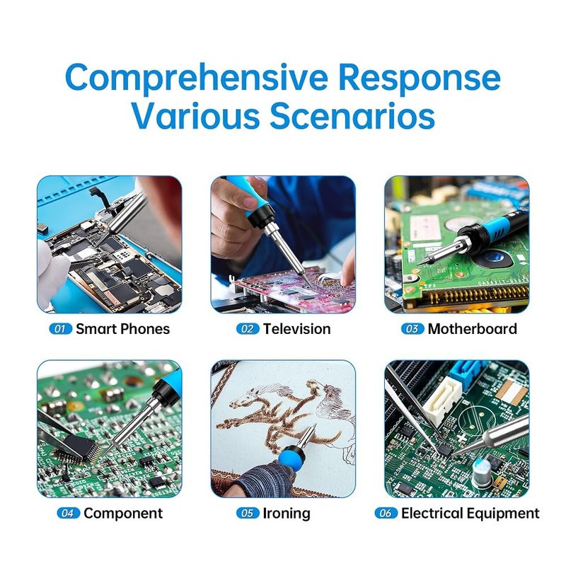 - 【Technical innovation】The soldering iron is upgraded to 90W high power, which can make the iron warm up quickly; this iron can adjust the temperature accurately, the temperature can be set flexibly to 180℃-480℃