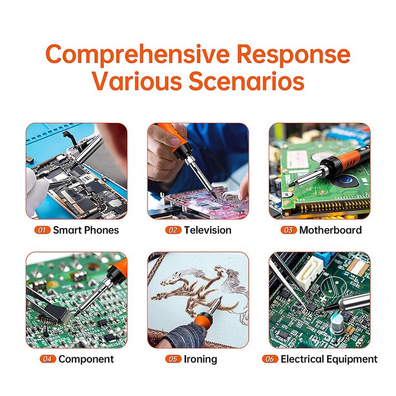 - 【Meet Your Any Needs】Different shapes of soldering iron tips can be easily used on guitars, watches, wires, mobile devices, computer hardware, small electronics, TV capacitors or accessories.