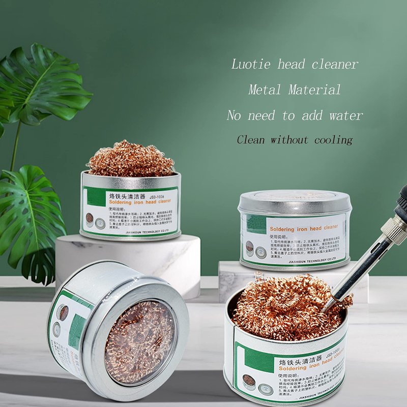 Feature of Solder Iron Tip / Head Cleaner —— Sturdy metal container; The Sponge made from brass coils, softer than the tip plating, yet harder than the oxidation that forms on the tip. Won't damage your soldering tips. To clean the tip, just stab the iron into the holder, great alternative to a wet sponge. No water required, meaning less chance of oxidation NOTE You need to wear gloves when you replace the metal wire, keep the cleaner uprightly when open it, please don't take the metal wire out to sweep the tips, or this will possibly splash the melted residual solder