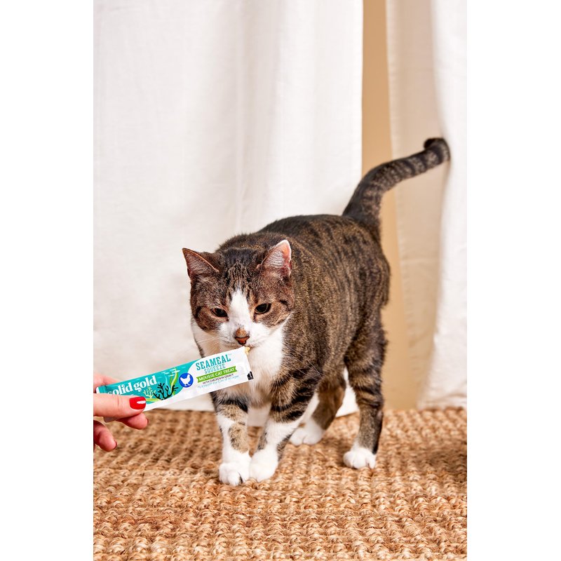 - Squeeze Treats for Cats with Health Benefits - Solid Gold SeaMeal Squeeze lickable cat treats are easy to feed with fiber-rich seaweed for digestive gut health and flaxseed for healthy skin and coat