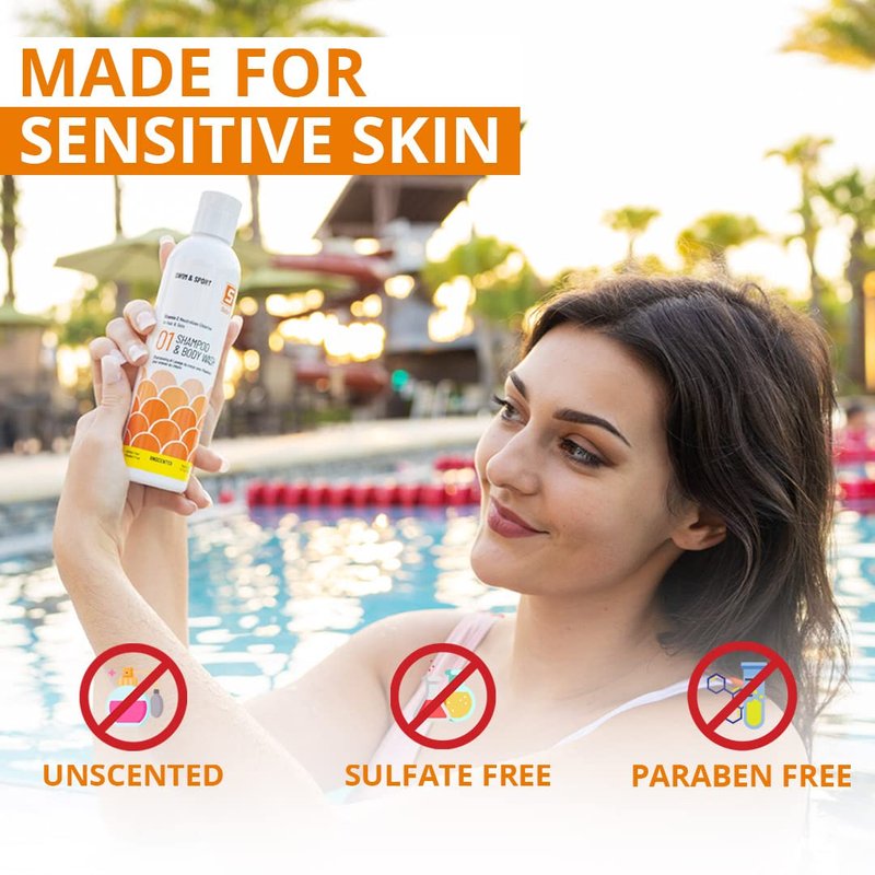 - The Best Swimmers Shampoo When Ingredients Matter: Natural vitamin C breaks down chlorine on skin and hair making it safe for kids or adults with sensitive skin.