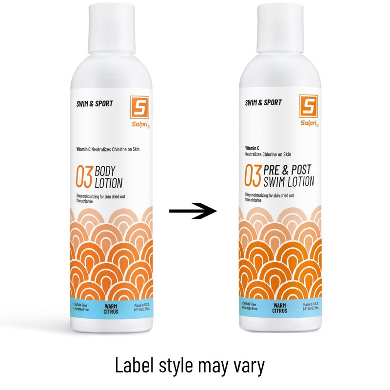Solpri pre and post swim lotion uses vitamin C to neutralize chlorine on skin, making your skin moisturized and itch free.