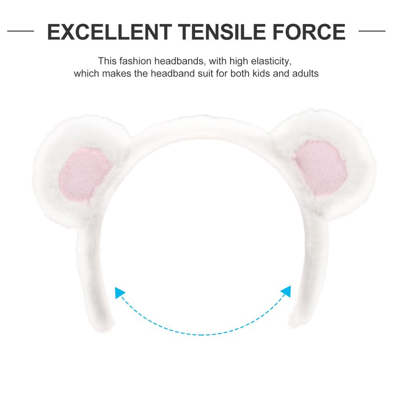 SOLUSTRE Bear Ears Headband Cloth Bear Face Wash Headband Adorable Head Wear for Women and Kids, White