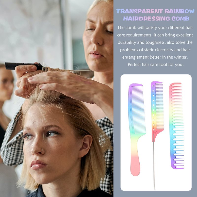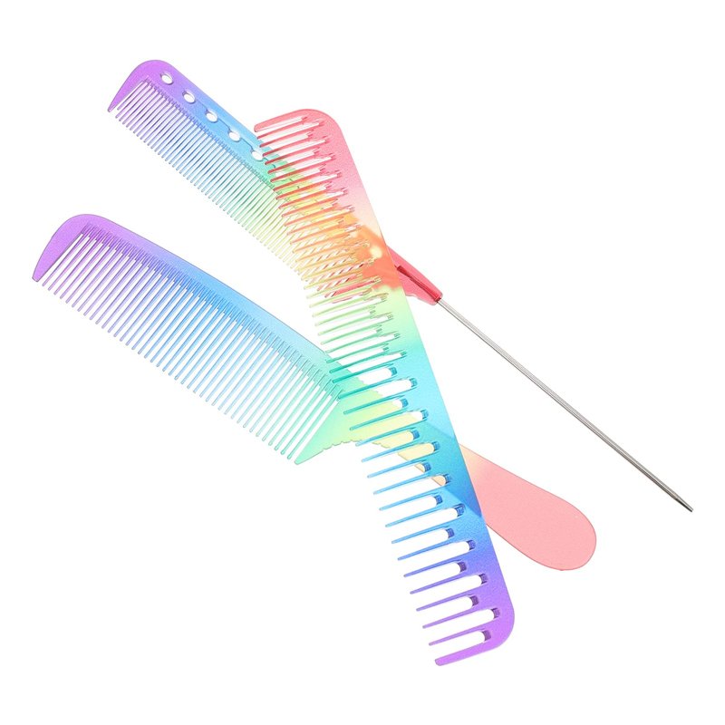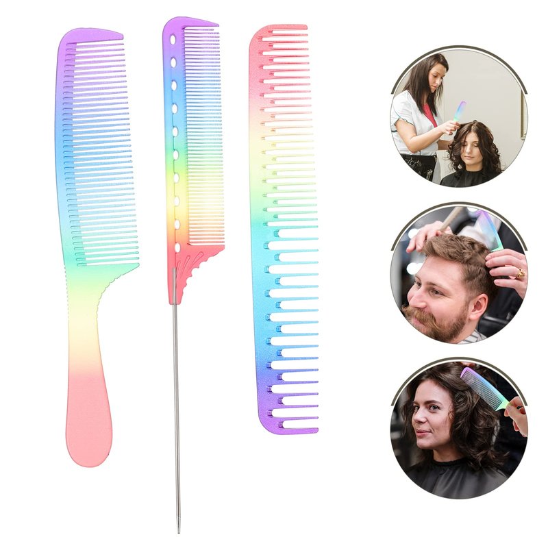 SOLUSTRE Womens Hair Brush Rainbow Hair Comb 3Pcs Hair Cutting Comb Salon Hair Comb Hair Cutting Comb Rainbow Rat Tail Comb Hair Cutting Comb Teasing Comb for Teasing Back Combing Travel Hairbrush