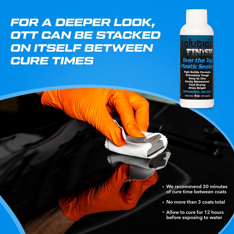 - 4 OZ FLEXIBLE, THERMOPLASTIC SEALER: To be used alone for automotive detailing or with other Solution Finish trim cleaner for a long-lasting finish for new or old black trim on vehicle’s exterior