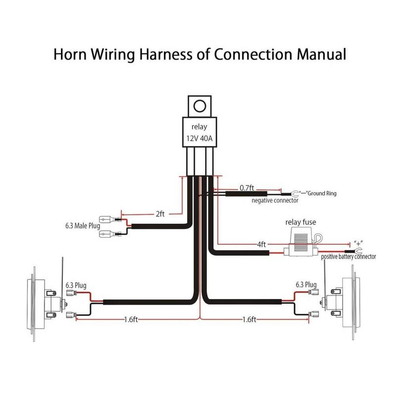 - 1 set of 12V horn wiring harness relay kit: the cable length is 64 inches, and up to two speakers can be connected (Product don't include speakers).