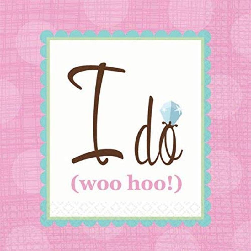 - "I do" wedding party beverage napkins with "Woo hoo" print design