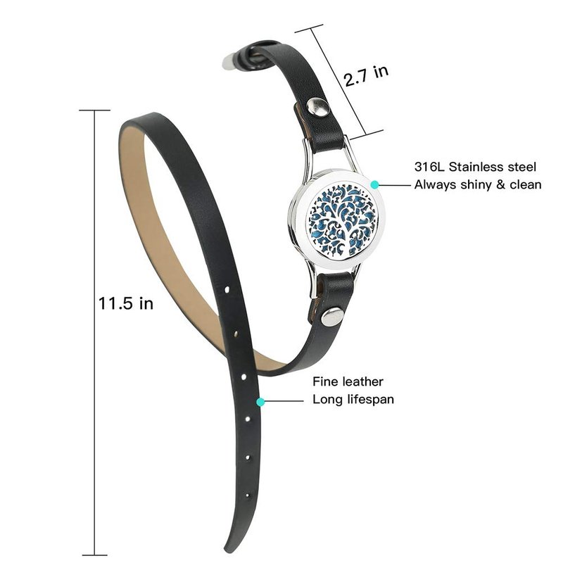 - UINQUE DESIGN-The aromatherapy bracelet is designed to loop around twice on your wrist,and the dial of the bracelet is designed with circular carvings to make it look retro and elegant.Just add a few drops of oil to the diffuser bracelet, and you will be surrounded by a charming scent in daily life.